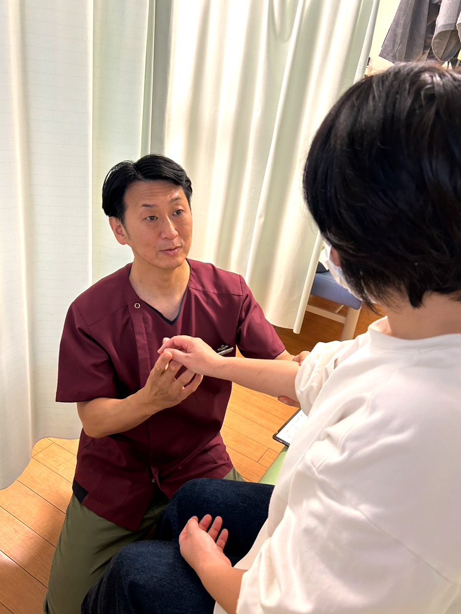 ご記入いただいた内容をもとに、施術者が直接お話を伺います。痛みの経緯や生活での困りごと、過去の治療歴などをじっくり確認し、施術の方向性を探ります。