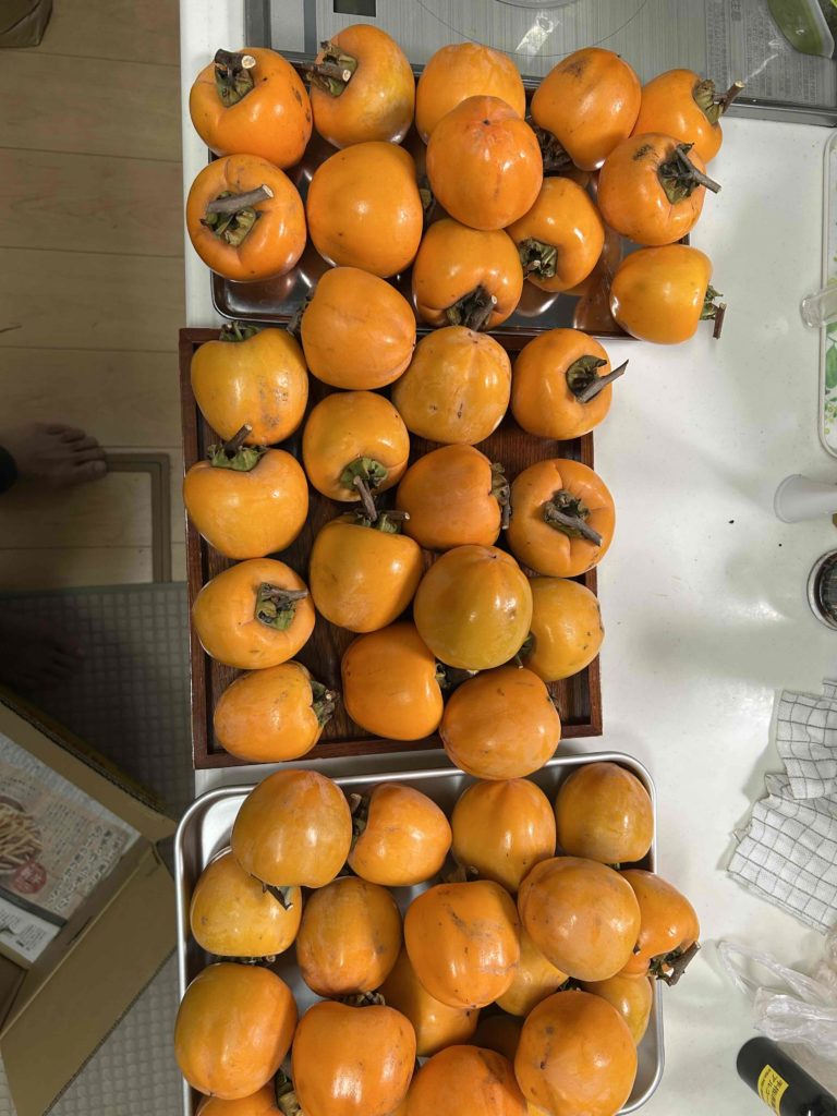 患者さんから干し柿用に渋柿を46個頂きました。なかなかの迫力ですね。