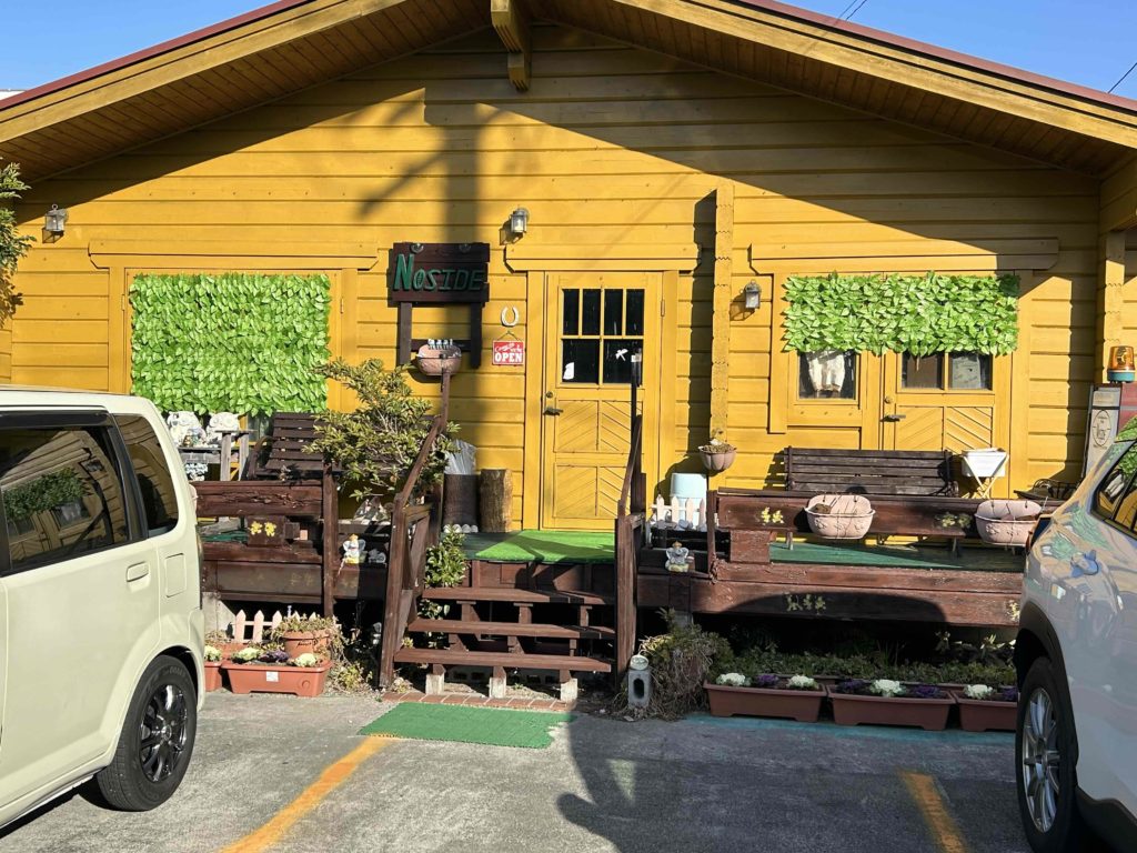 途中に寄った「ノーサイド」という喫茶店です。とてもおしゃれで中もこだわりがある感じで、いろんなアイテムがたくさんありました。