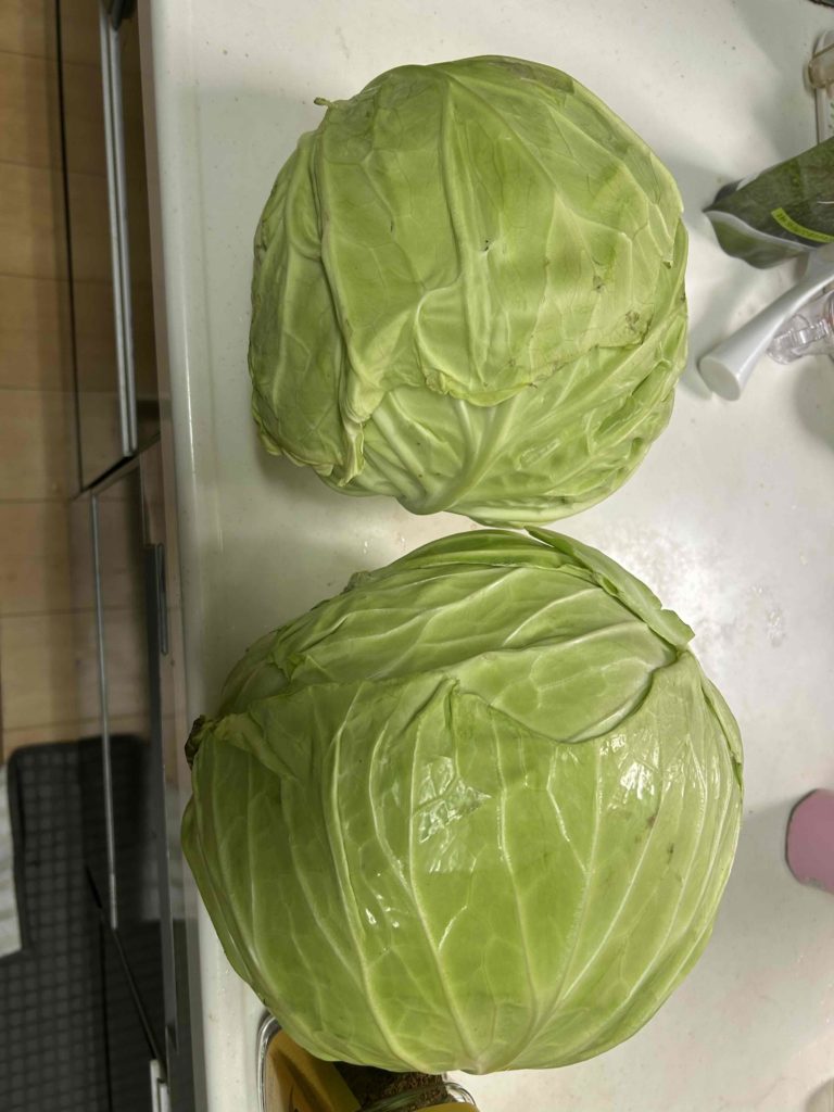 先日畑で採れたキャベツです。なかなかのおばけキャベツです。でも冬キャベツなので、ぎゅっとしまってずっしりと重みもあって、甘くて美味しかったです!